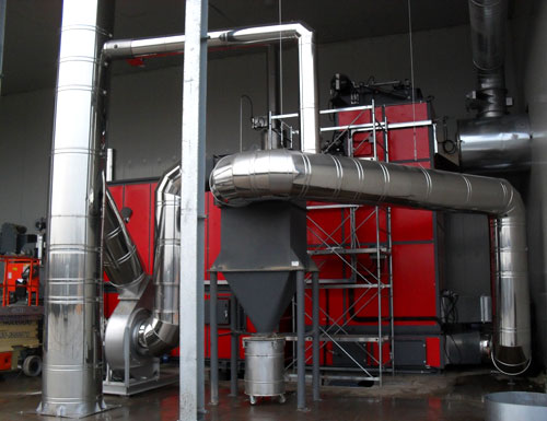 Uniconfort ha installato un impianto che produce vapore bruciando gli scarti di produzione dimensionato in modo da non necessitare di carburante acquistato all’esterno: una caldaia Global 400, alimentata con 2 tonnellate di scarti all’ora, che produce 600 ton/h di vapore a 10 bar. Il processo è ottimizzato in ogni sua fase: i fumi di combustione, per esempio, vengono sfruttati per preessicare il combustibile molto umido, e le ceneri risultanti vengono utilizzate subito come ammendante nelle loro coltivazioni.