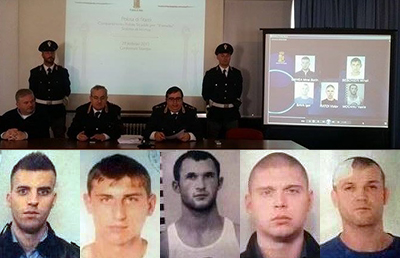 Igor Sava è stato arrestato in fragranza di reato, mentre l’arresto di Mihail Beschieri, Victor Ratoi, Vasile Mocanu e Mirel Sorin Ganea, è avvenuto venerdì scorso : le indagini proseguono nell’ottica di un’organizzazione criminale dei quali i cinque giovani moldavi rappresenterebbero semplicemente la punta dell’iceberg.