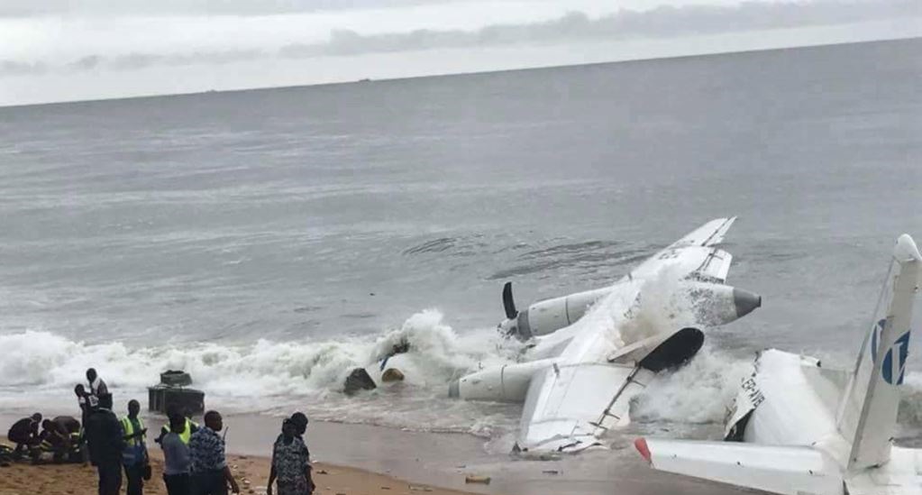 La polizia ha detto che c’erano dieci persone a bordo del cargo che si è schiantato in mare vicino all’aeroporto internazionale di Abidjan durante un forte temporale.
